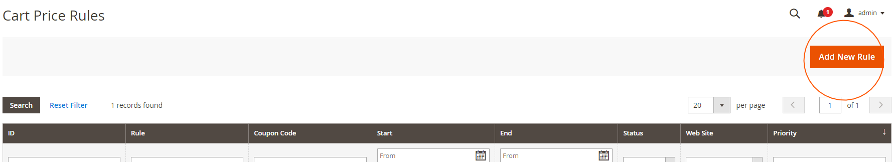 1. Navigate to Cart Price Rules