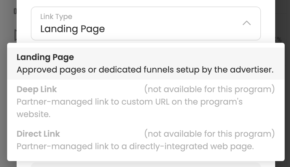 If a Program does not allow Direct Links, this could be because the Advertiser does not allow them, or because the Advertiser does not have a compatible technical integration.