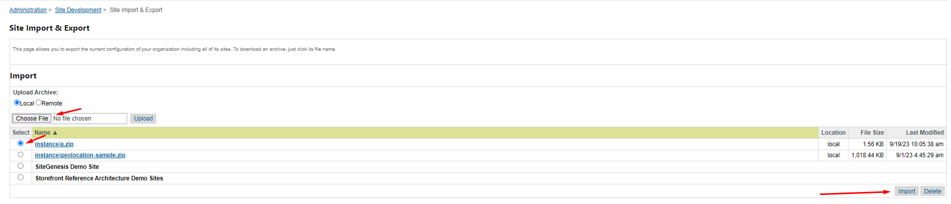 Go to Administration > Site Development > Site Import & Export