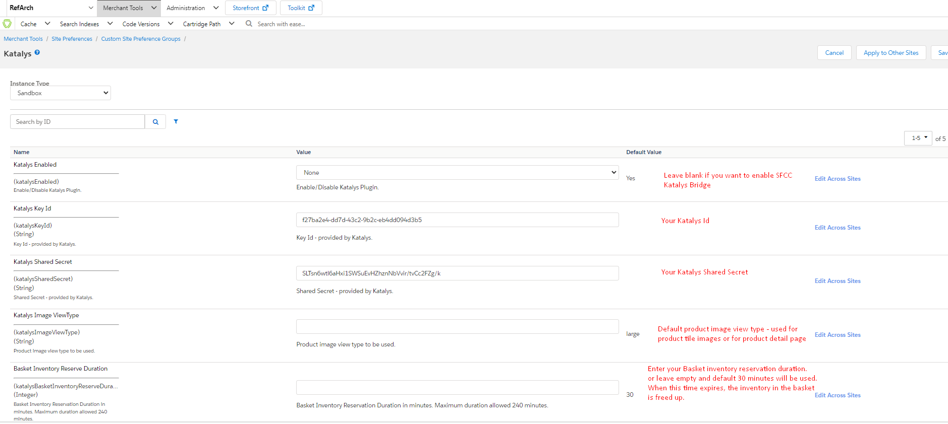 Now you will have Katalys' site preferences in your Business Manager, and you can continue to Step 2: Connecting your store with Katalys.
