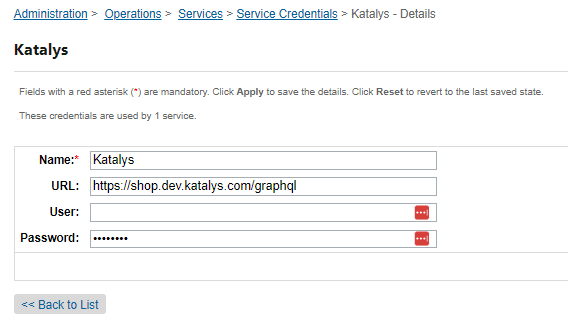 Go to Administration > Operations > Services > Service Credentials > Katalys - Details: