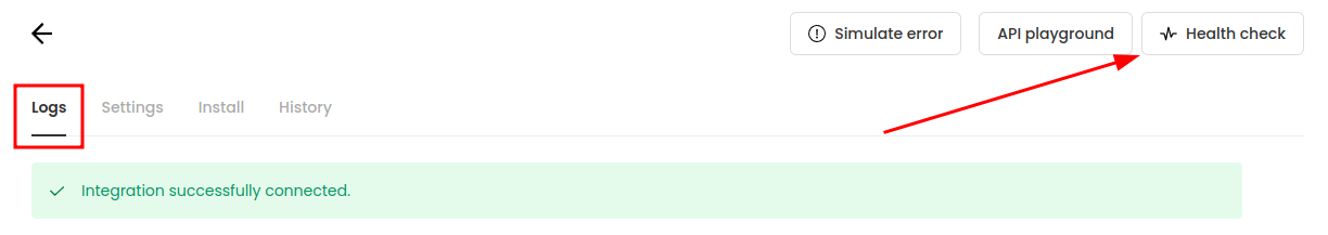 Logstab and click Healthcheck