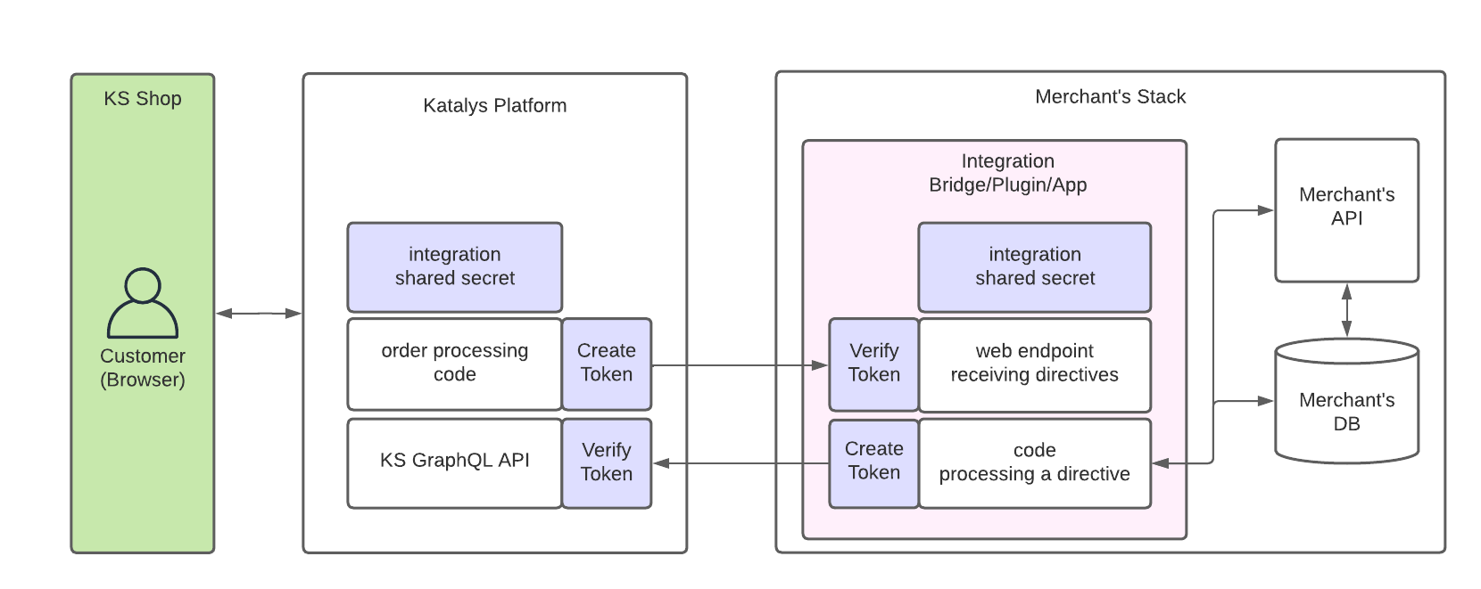 When the Integration sends API requests to Katalys. Katalys ⇠ Merchant